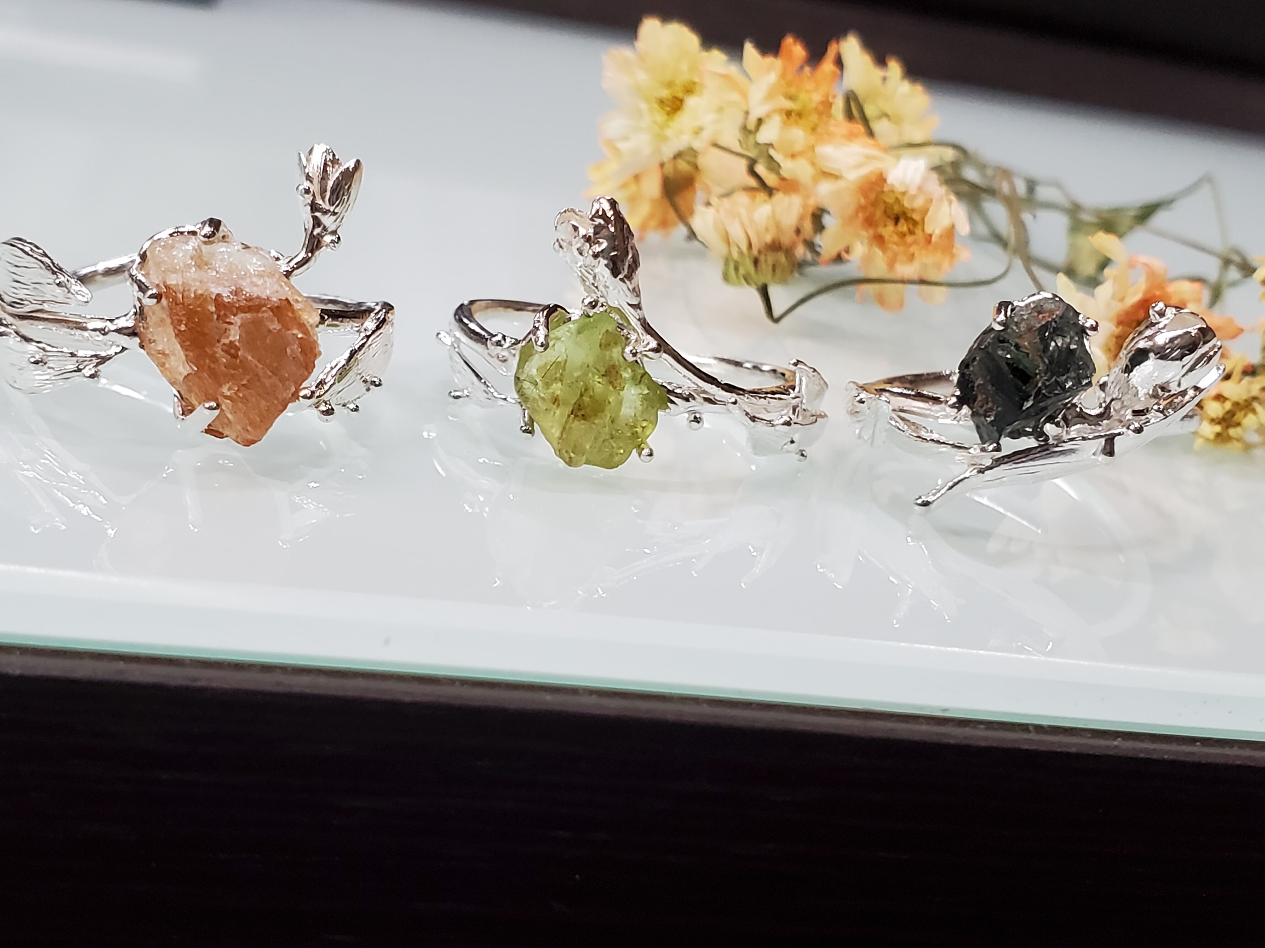 原石を留めた指輪をくじ形式で販売します。