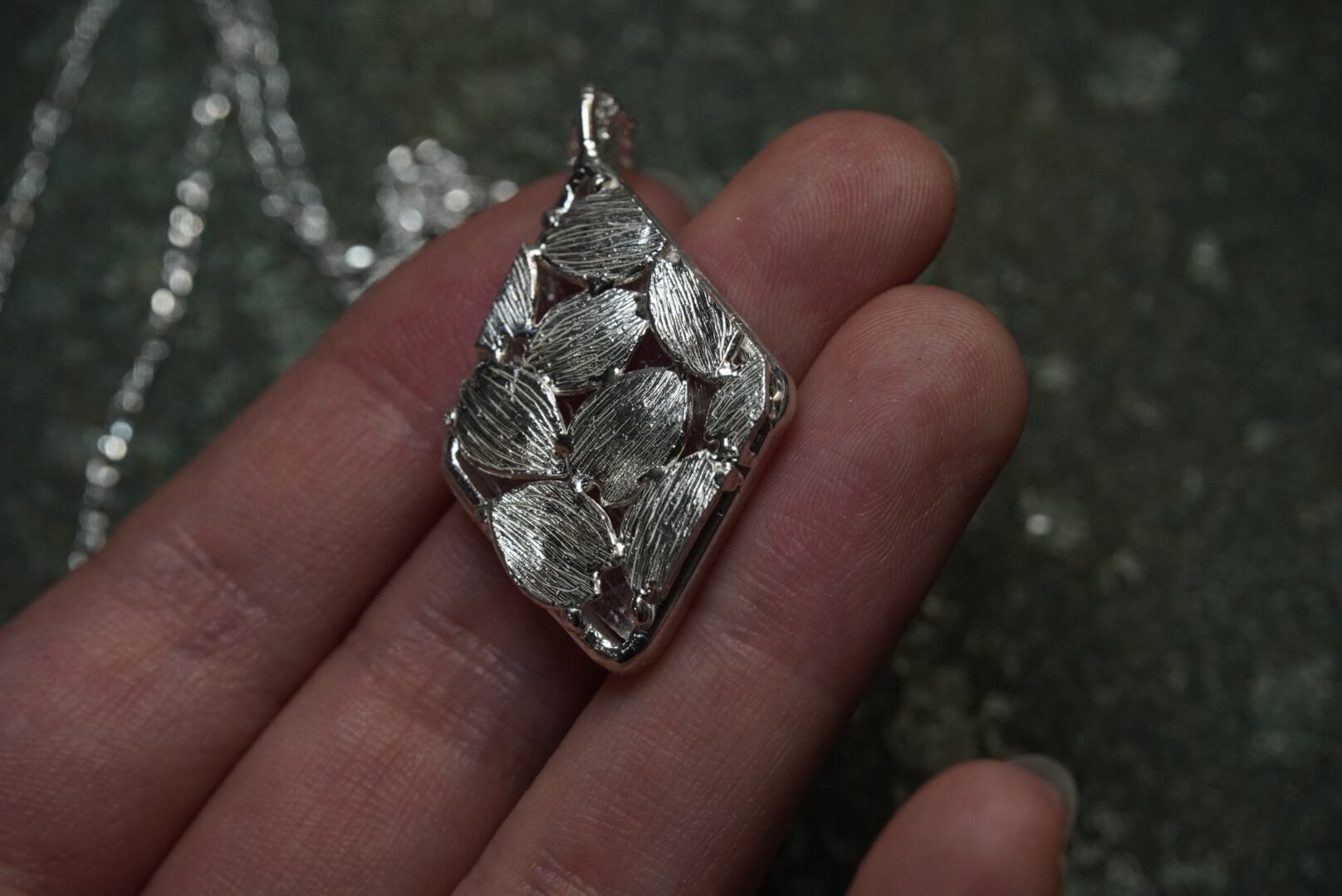 散った桜の花びらを敷き詰めたペンダント。