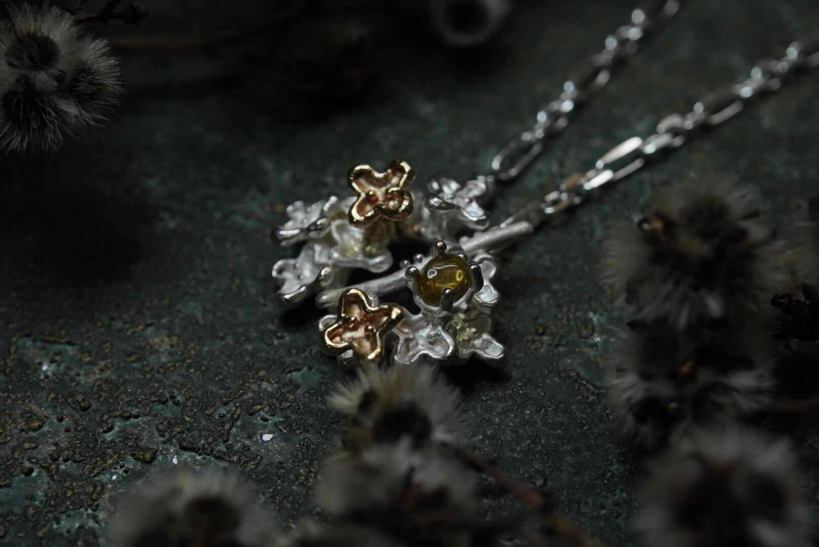金木犀、銀木犀をあしらったマンテルネックレスです。